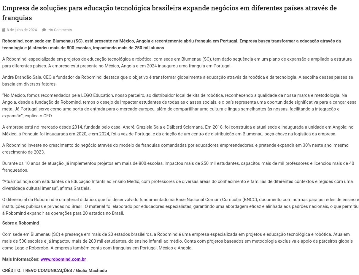 Empresa de soluções para educação tecnológica brasileira expande negócios em diferentes países através de franquias