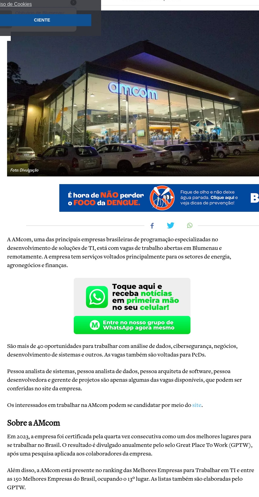Empresa de tecnologia abre oportunidades de emprego em Blumenau
