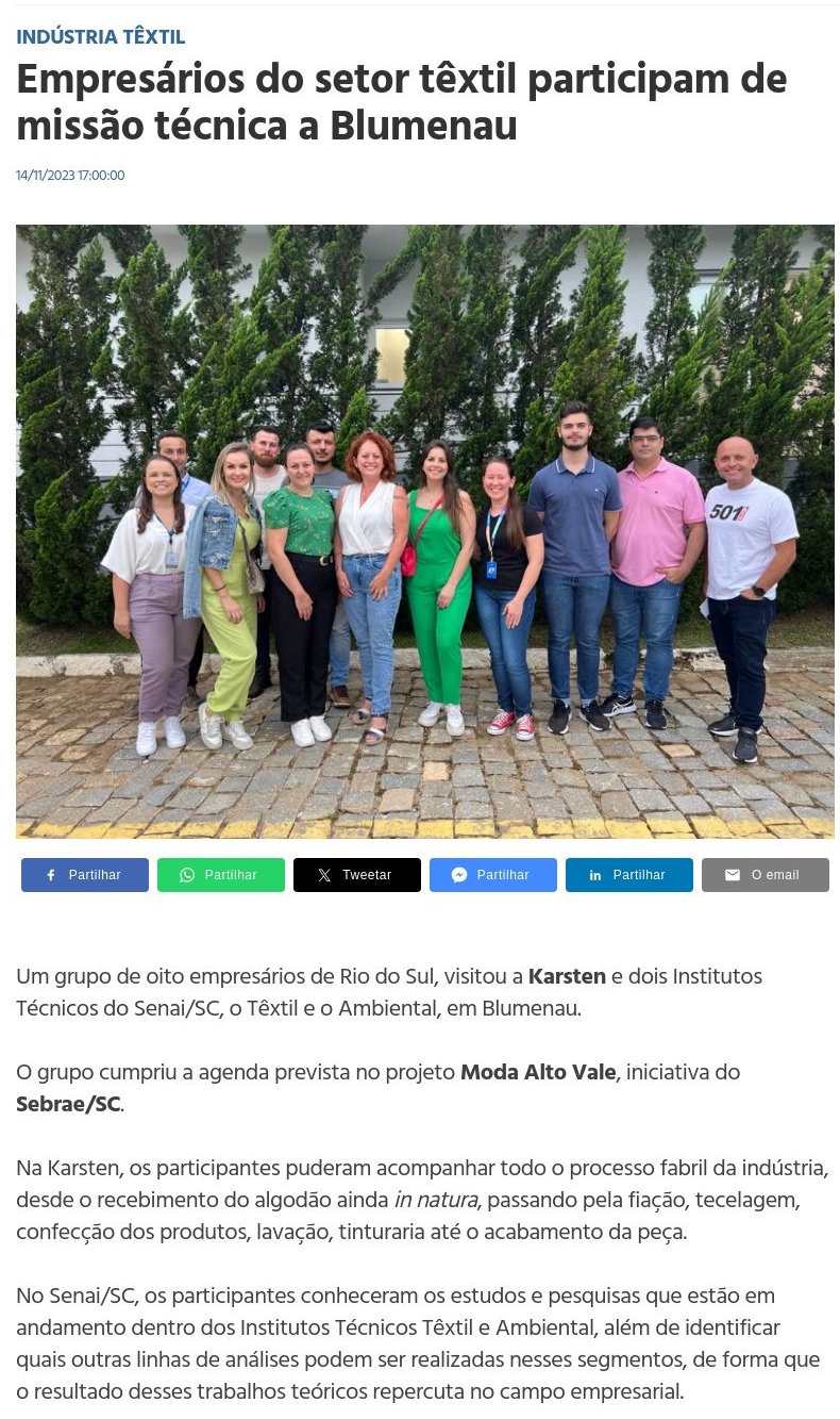 Empresários do setor têxtil participam de missão técnica a Blumenau | Jornal de Blumenau