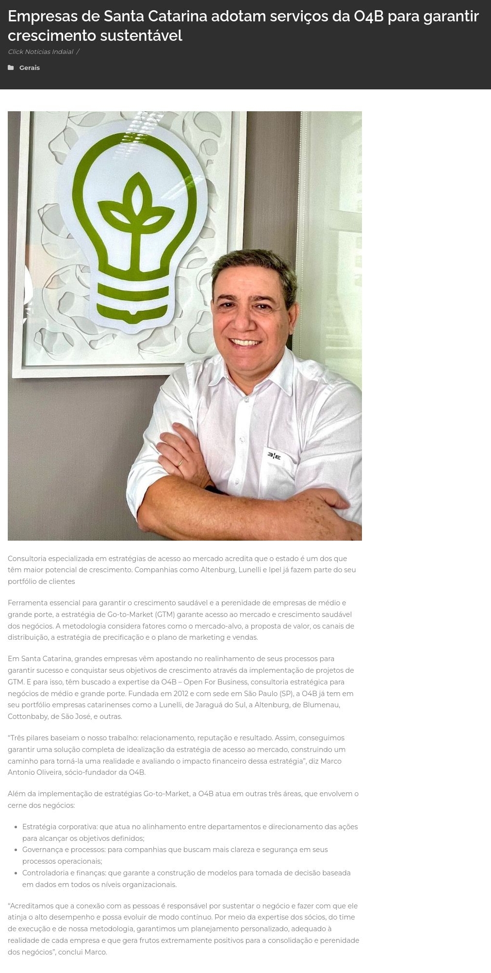 Empresas de Santa Catarina adotam serviços da O4B para garantir crescimento sustentável - Click Notícias Indaial