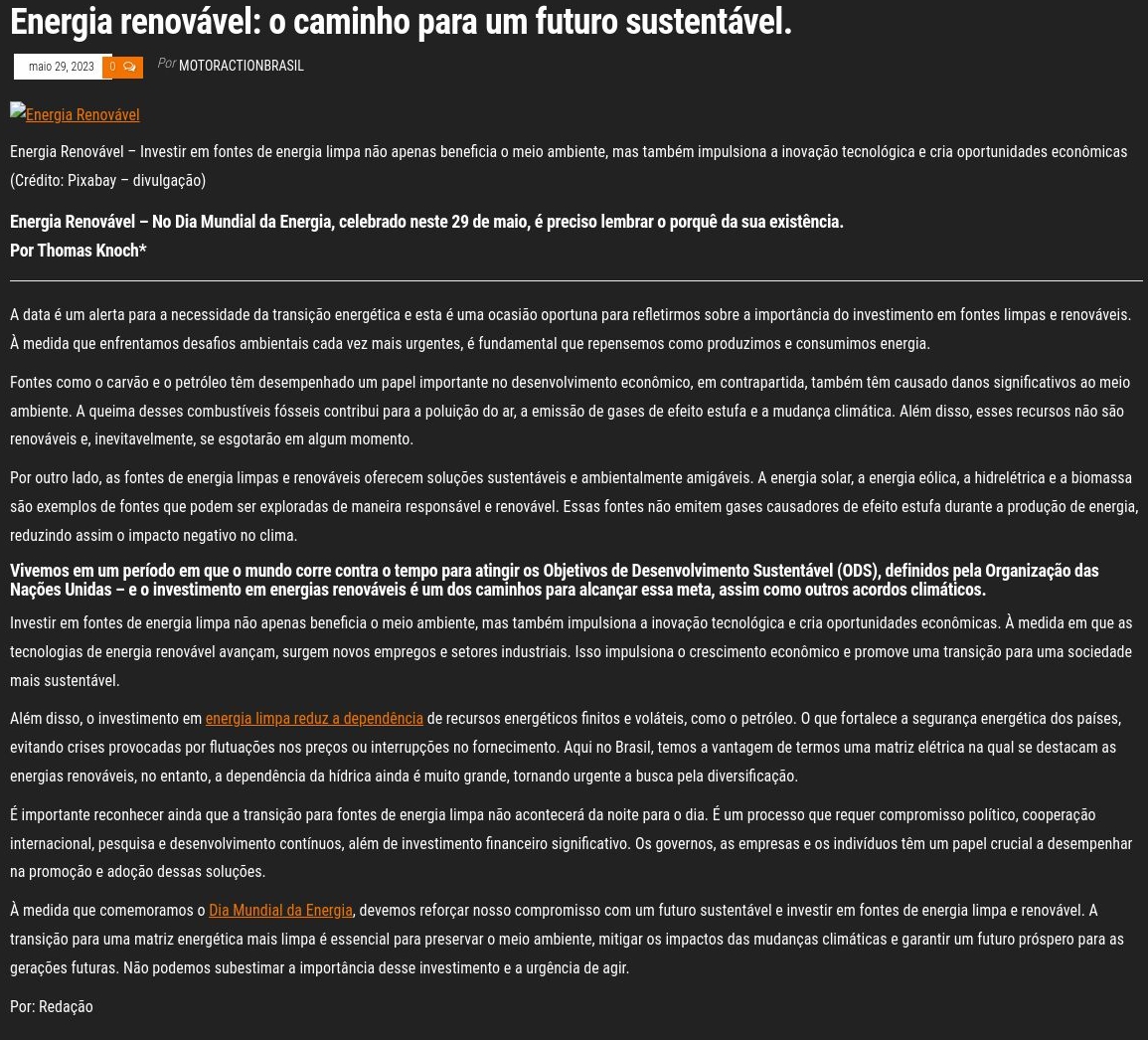 Energia renovável: o caminho para um futuro sustentável. - Motor Action Brasil