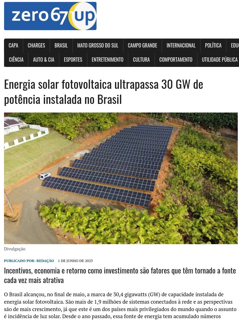 Energia solar fotovoltaica ultrapassa 30 GW de potência instalada no Brasil