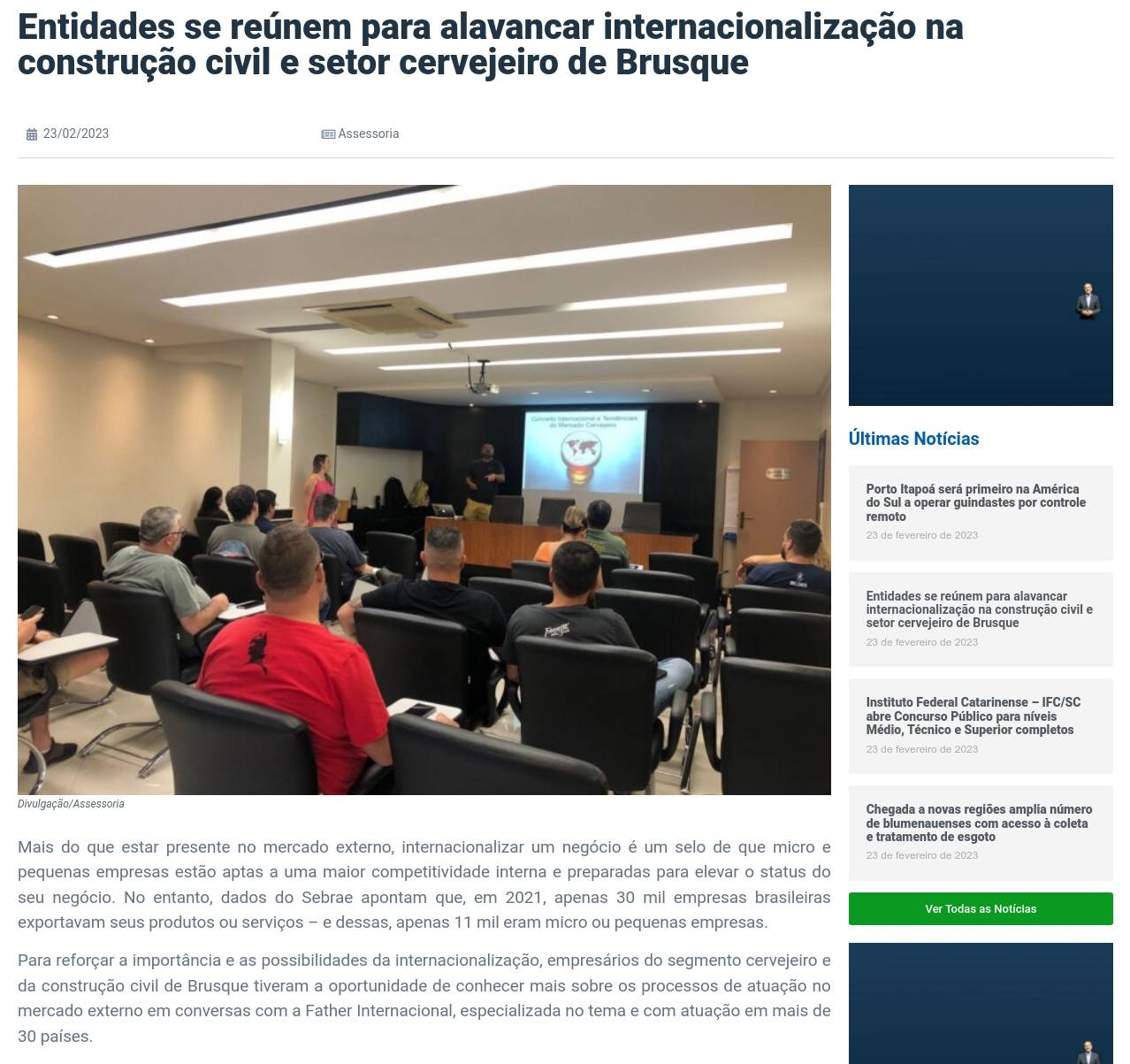 Entidades se reúnem para alavancar internacionalização na construção civil e setor cervejeiro de Brusque Santa Catarina News