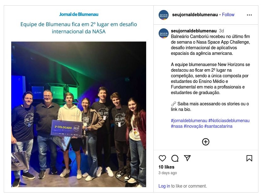 Equipe de Blumenau fica em 2º lugar em desafio internacional da NASA