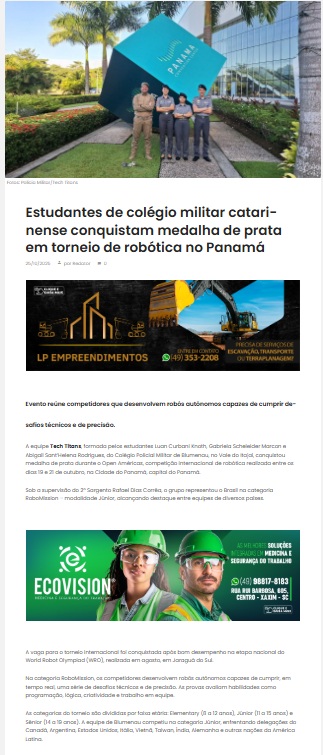 Estudantes de colégio militar catarinense conquistam medalha de prata em torneio de robótica no Panamá