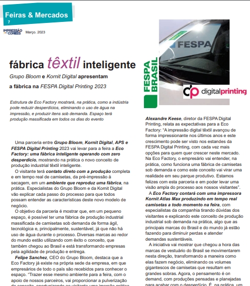 Fábrica têxtil inteligente: Grupo Bloom e Kornit Digital apresentam fábrica têxtil na FESPA Digital Printing 2023