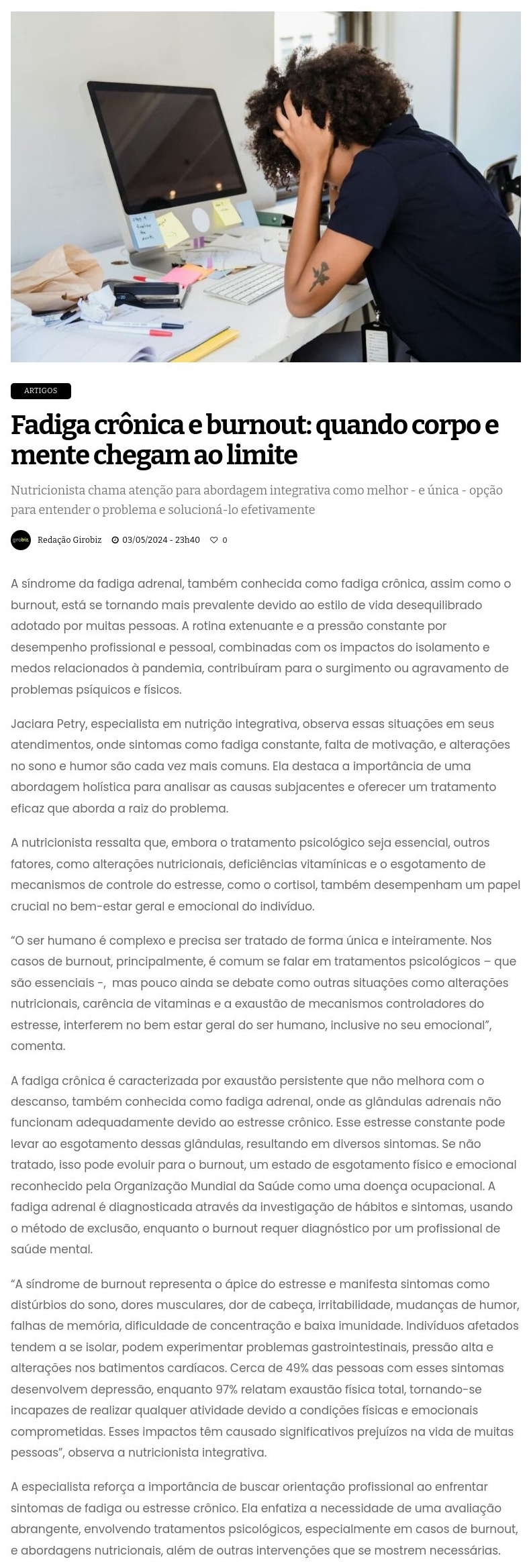 Fadiga crônica e burnout: quando corpo e mente chegam ao limite - GiroBIZ