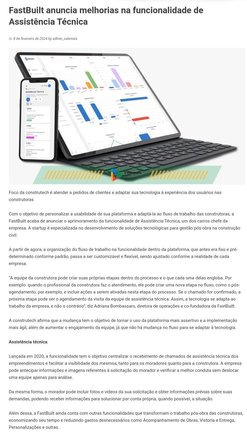 FastBuilt anuncia melhorias na funcionalidade de Assistência Técnica - Vale Mais Notícia
