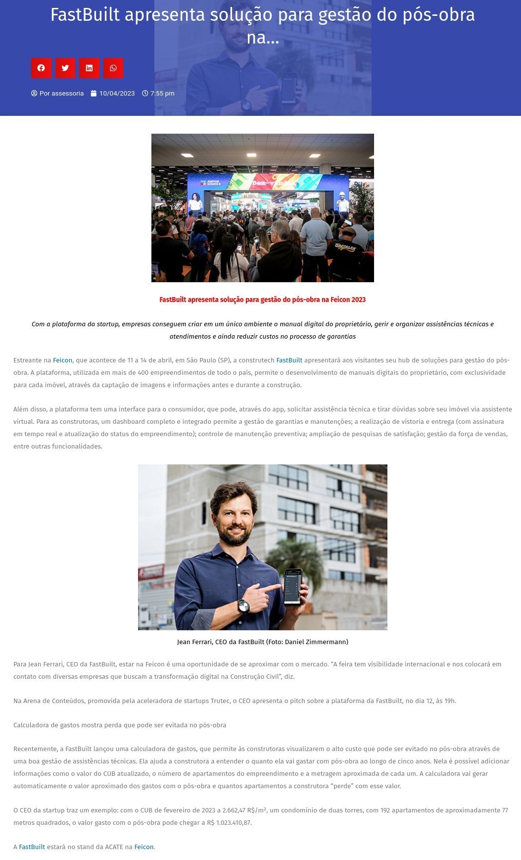 FastBuilt apresenta solução para gestão do pós-obra na?