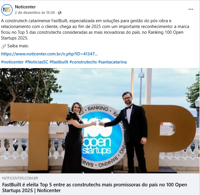 FastBuilt é eleita Top 5 entre as construtechs mais promissoras do país no 100 Open Startups 2025 | Noticenter