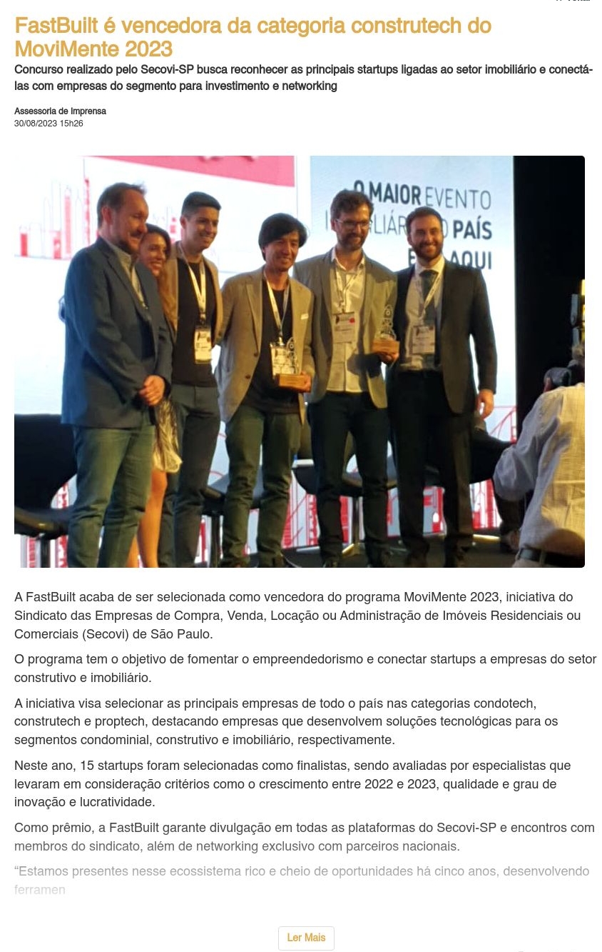 FastBuilt é vencedora da categoria construtech do MoviMente 2023