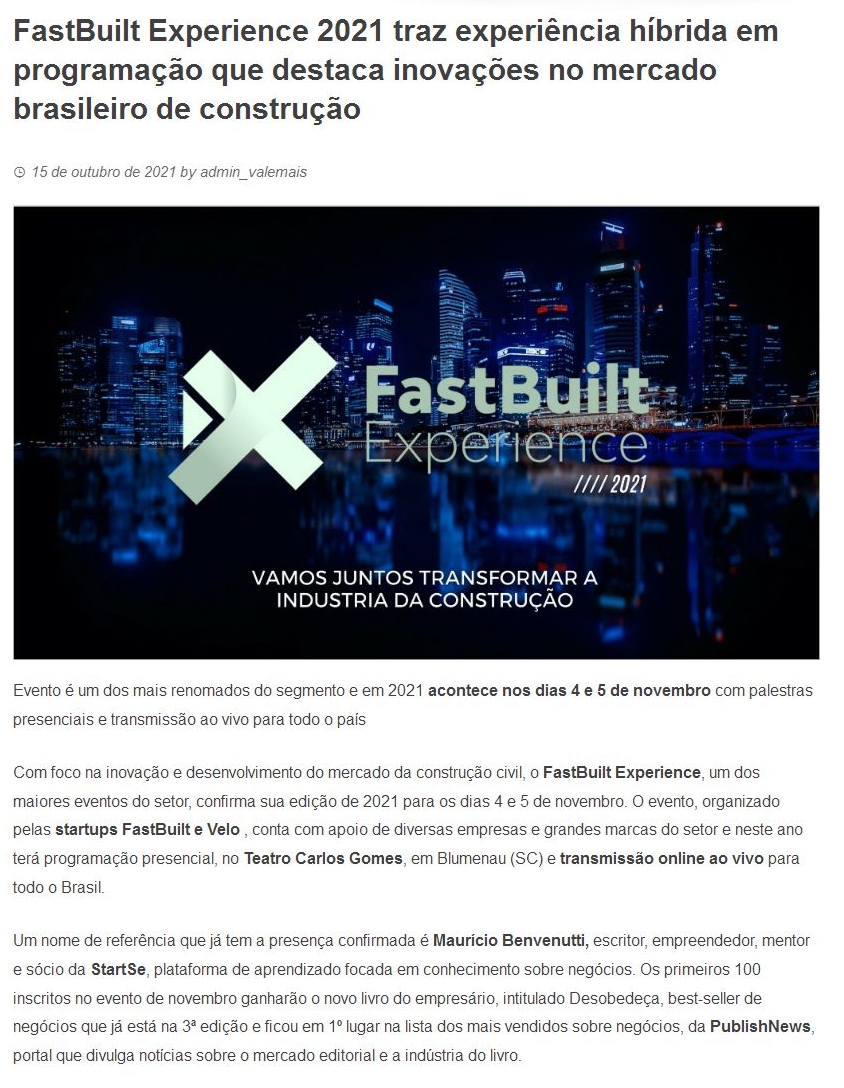FastBuilt Experience 2021 traz experiência híbrida em programação que destaca inovações no mercado brasileiro de construção - Vale Mais Notícia