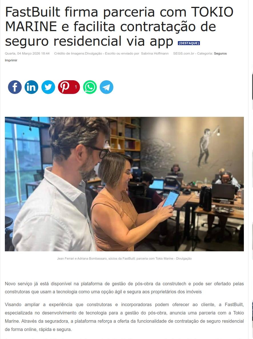 FastBuilt firma parceria com TOKIO MARINE e facilita contratação de seguro residencial via app