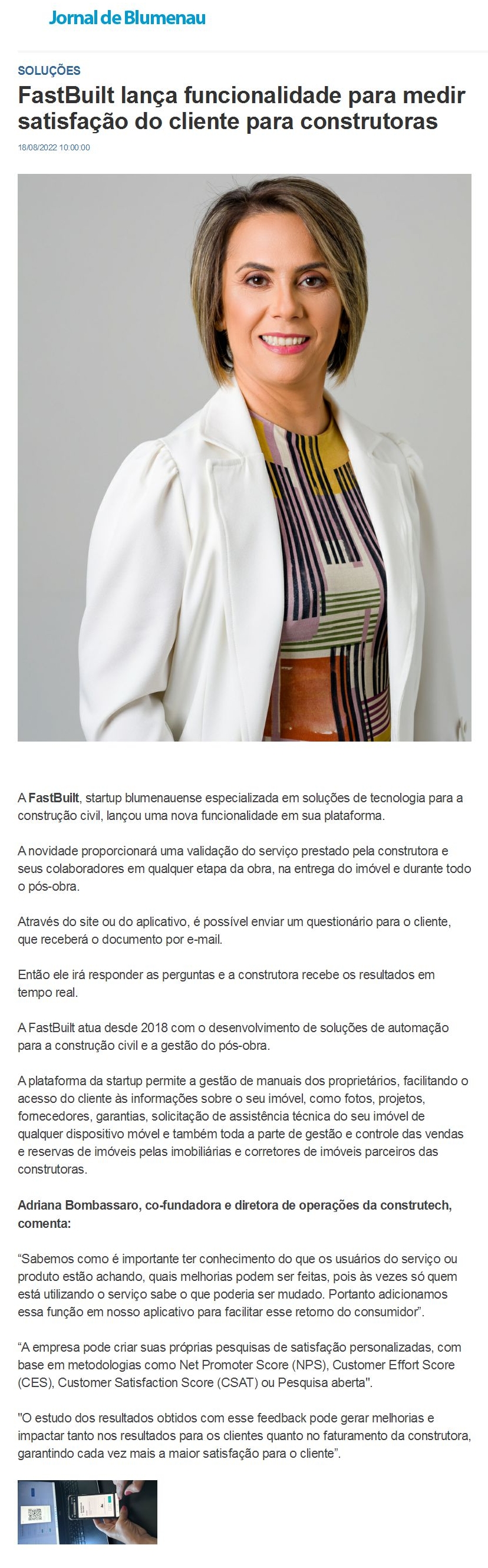 FastBuilt lança funcionalidade para medir satisfação do cliente para construtoras | Jornal de Blumenau