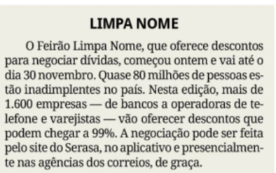 Feirão Limpa Nome: mais de 1,6 mil empresas se unem à Serasa e Correios para conter crescimento da inadimplência