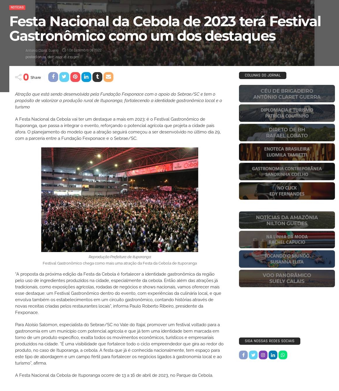 Festa Nacional da Cebola de 2023 terá Festival Gastronômico como um dos destaques - Jornal MG Turismo