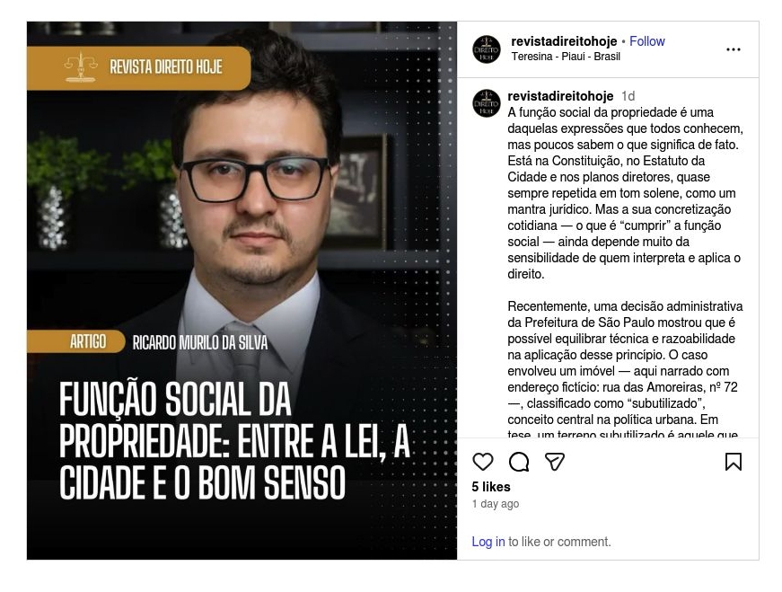Função social da propriedade: entre a lei, a cidade e o bom senso