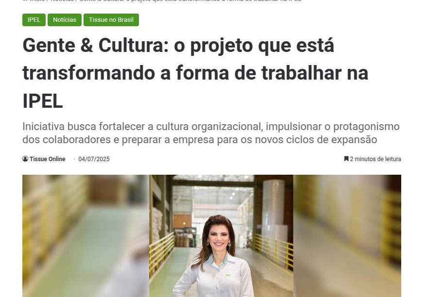 https://tissueonline.com.br/gente-cultura-o-projeto-que-esta-transformando-a-forma-de-trabalhar-na-ipel/?fbclid=PAQ0xDSwLVDuxleHRuA2FlbQIxMQABpyq7WLzZEUjtO0veaXXHFOyduWo9PwWJTib3EqyFSBO6BrNHowTMtdclQjVT_aem_4_guGpoHeil-AEBeXdmv1A