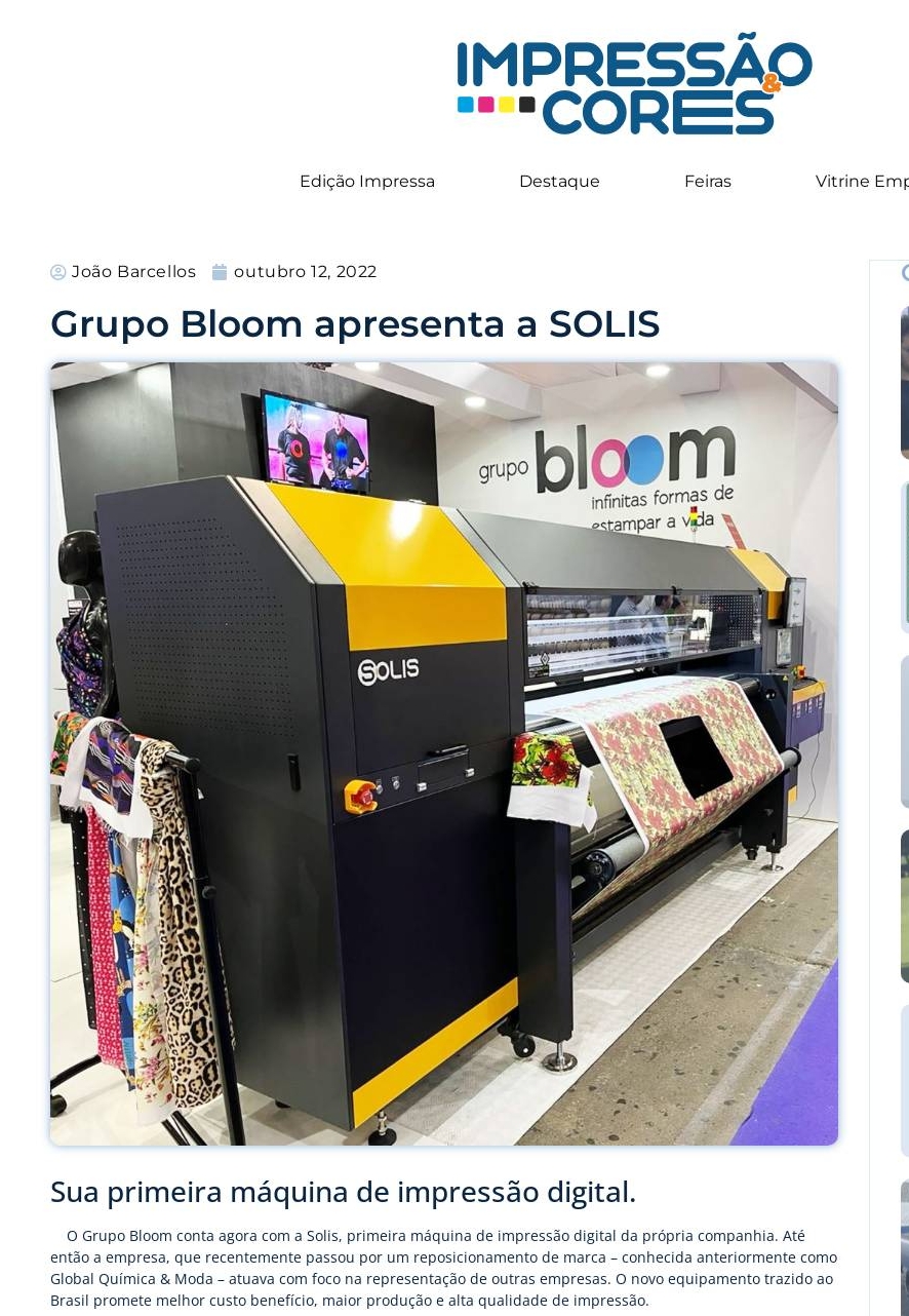 Grupo Bloom apresenta a Solis, sua primeira máquina de impressão digital