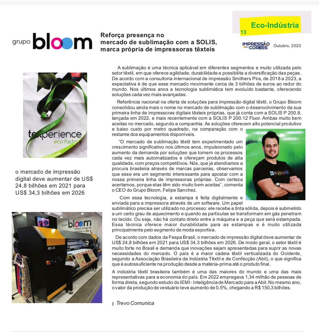 Grupo Bloom reforça presença no mercado de sublimação com a SOLIS, marca própria de impressoras têxteis