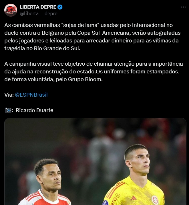 Grupo Bloom usa tecnologia para estampar "manchas da enchente" no uniforme do Internacional