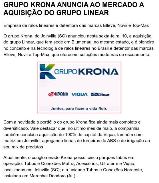 GRUPO KRONA ANUNCIA AO MERCADO A AQUISIÇÃO DO GRUPO LINEAR
