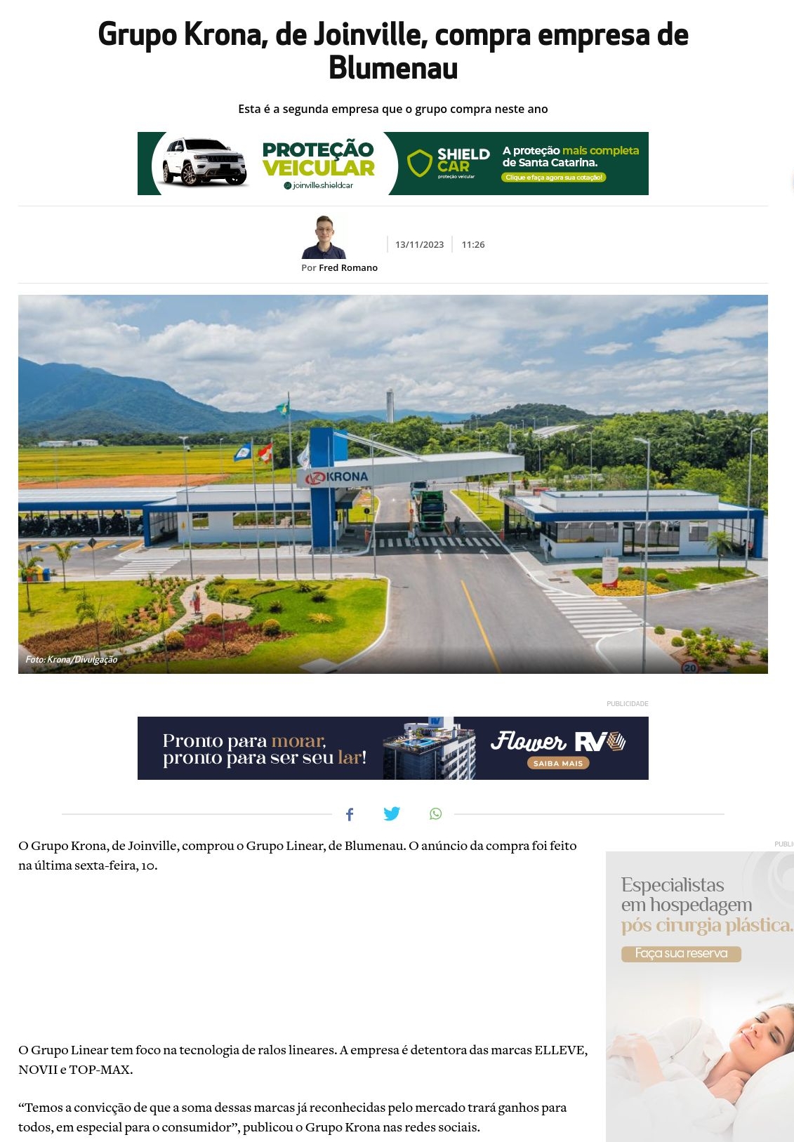 Grupo Krona, de Joinville, compra empresa de Blumenau