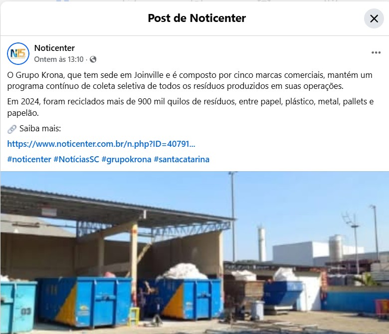 Grupo Krona transforma 900 toneladas de resíduos em impacto social | Noticenter