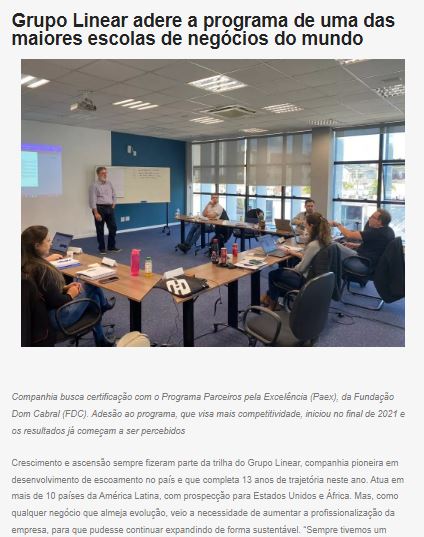 Grupo Linear adere a programa de uma das maiores escolas de negócios do mundo