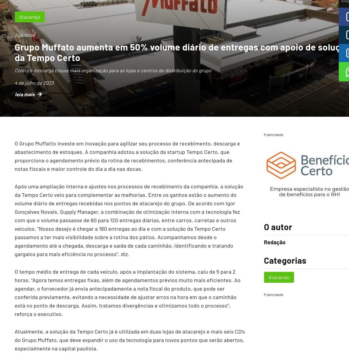 Grupo Muffato aumenta em 50% volume diário de entregas com apoio de solução da Tempo Certo - SuperVarejo