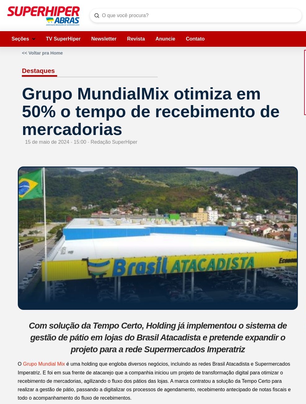Grupo MundialMix otimiza em 50% o tempo de recebimento de mercadorias SuperHiper