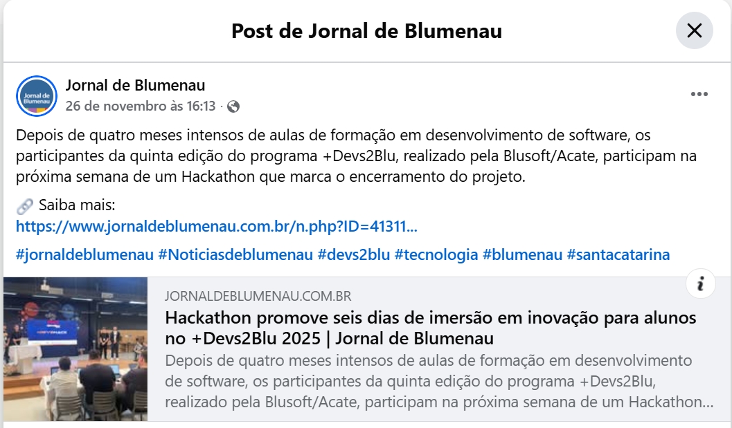 Hackathon promove seis dias de imersão em inovação para alunos no +Devs2Blu 2025 | Jornal de Blumenau