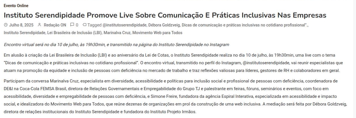 Instituto Serendipidade promove live sobre comunicação e práticas inclusivas nas empresas -