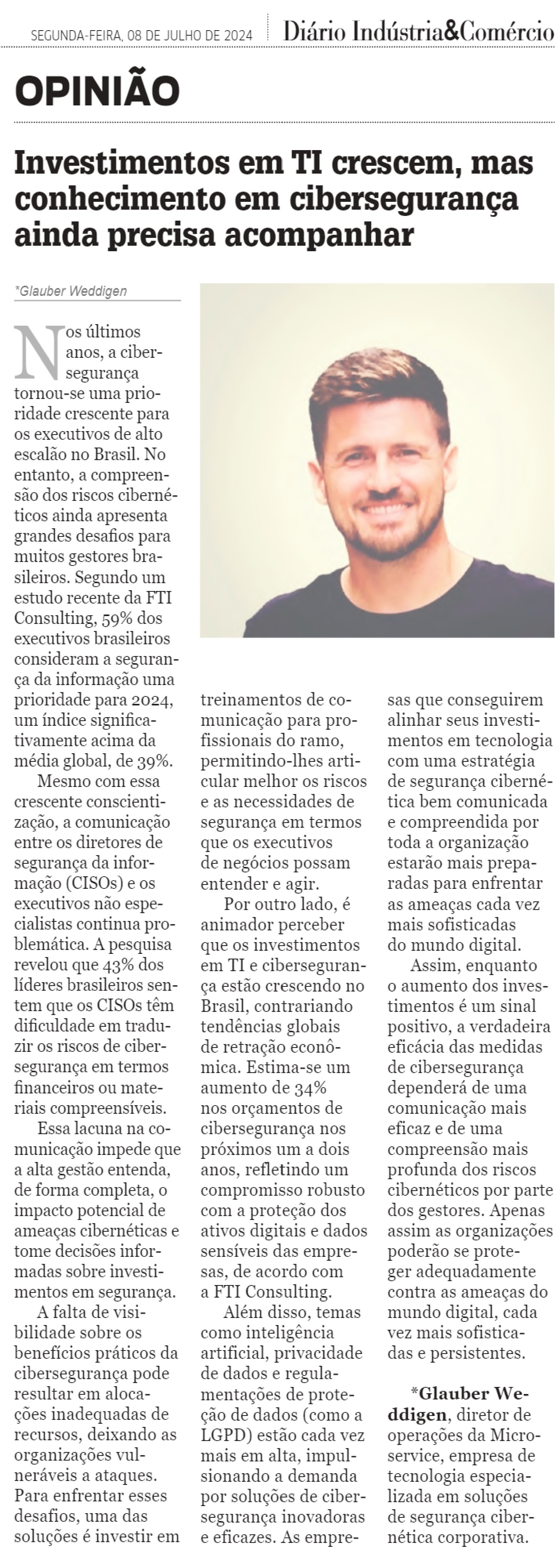 Investimentos em TI crescem, mas conhecimento em cibersegurança ainda precisa acompanhar