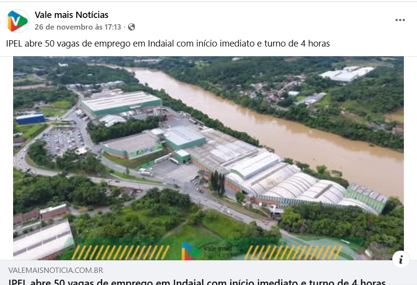 IPEL abre 50 vagas de emprego em Indaial com início imediato e turno de 4 horas