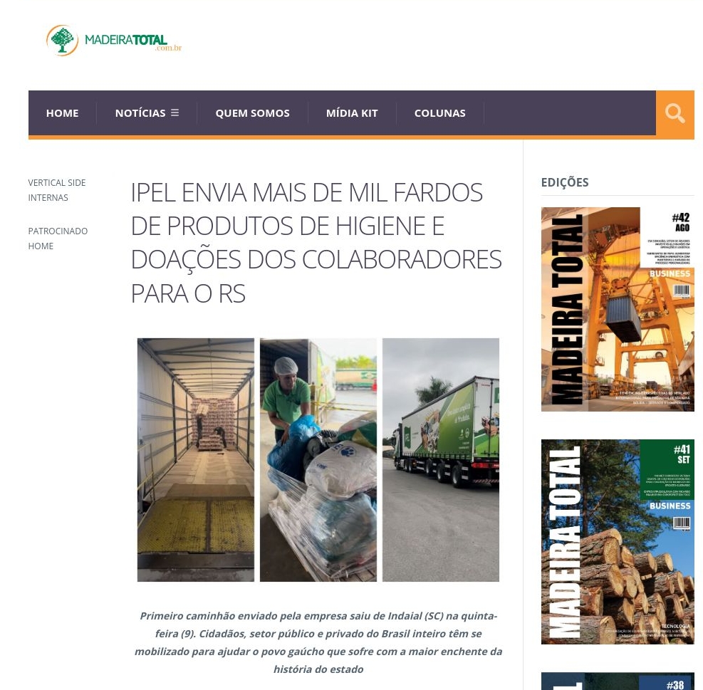 IPEL envia mais de mil fardos de produtos de higiene e doações dos colaboradores para o RS - Madeira Total