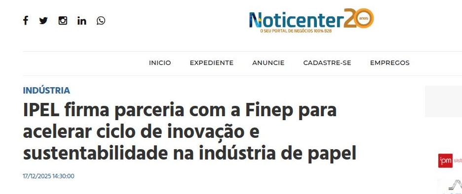 IPEL firma parceria com a Finep para acelerar ciclo de inovação e sustentabilidade na indústria de papel Noticenter