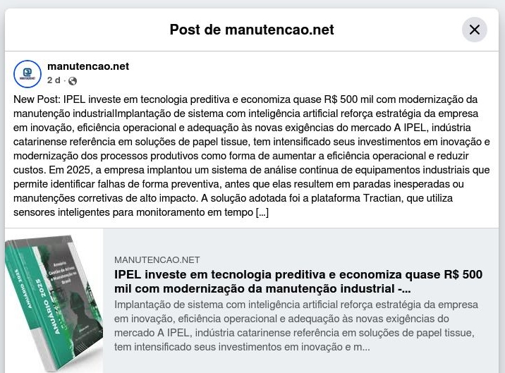 IPEL investe em tecnologia preditiva e economiza quase R$ 500 mil com modernização da manutenção industrial - Manutenção.net