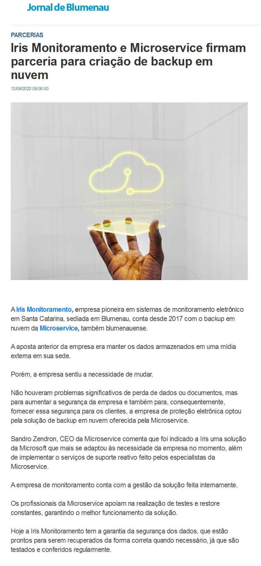 https://www.jornaldeblumenau.com.br/n.php?ID=31513&T=iris-monitoramento-e-microservice-firmam-parceria-para-criacao-de-backup-em-nuvem