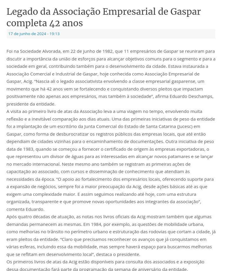Legado da Associação Empresarial de Gaspar completa 42 anos