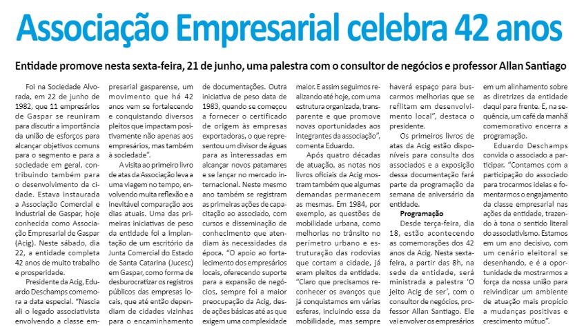 Legado da Associação Empresarial de Gaspar completa 42 anos
