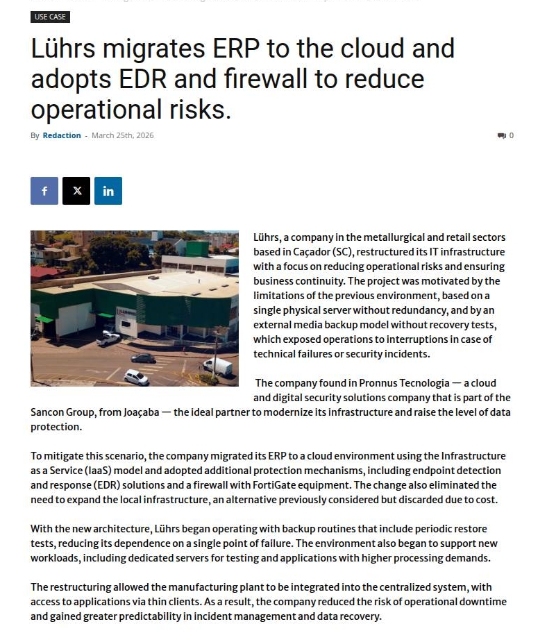 Lührs migra ERP para a nuvem e adota EDR e firewall para reduzir riscos operacionais