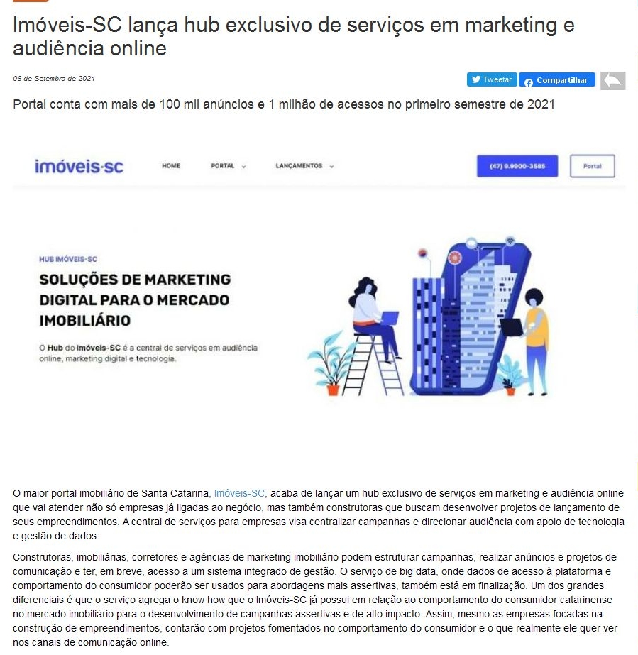 Maior portal imobiliário de SC lança hub de serviços de marketing digital que atenderá também construtoras