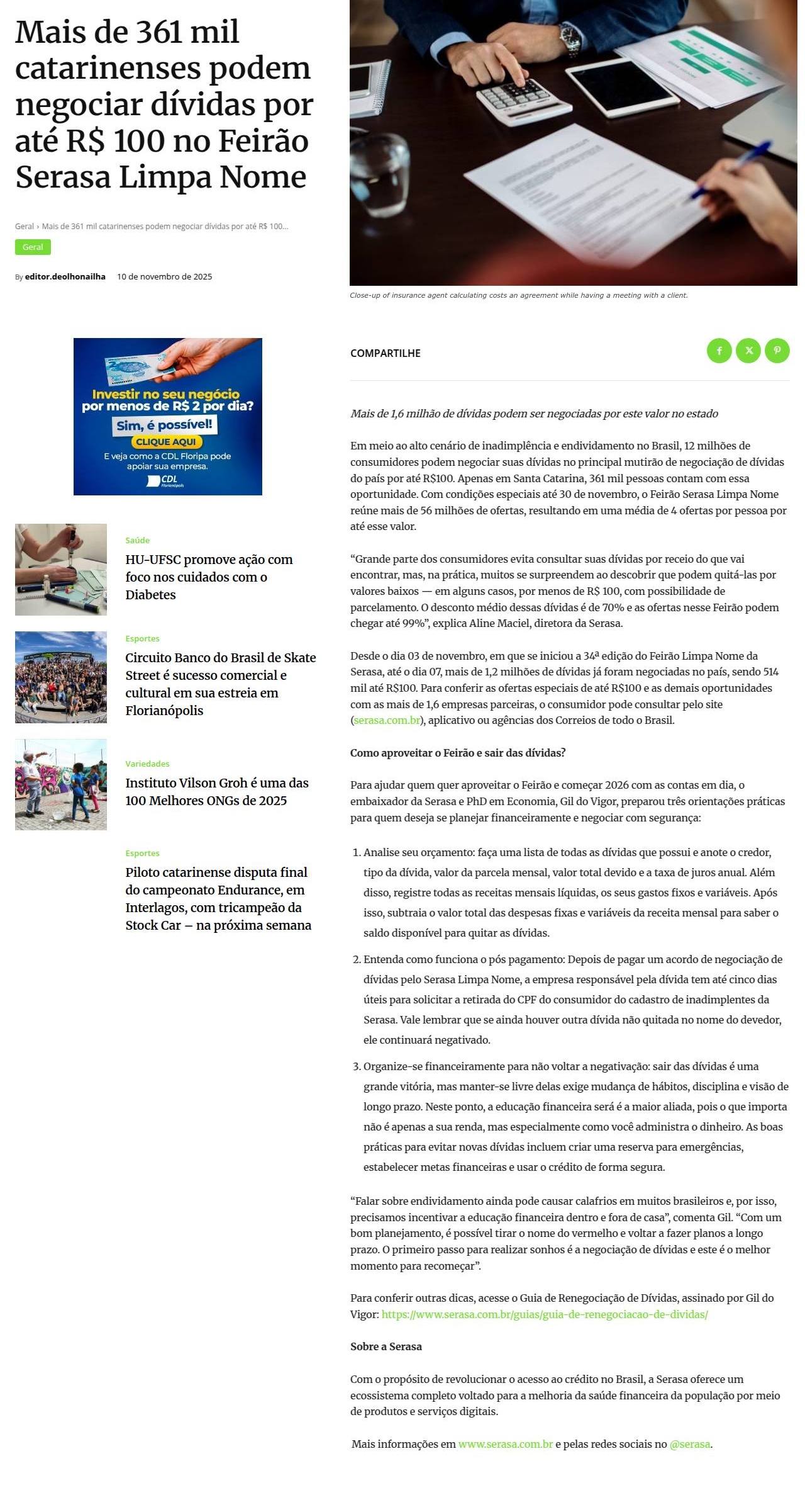 https://www.deolhonailha.com.br/florianopolis/noticias/mais-de-361-mil-catarinenses-podem-negociar-dividas-por-ate-r-100-no-feirao-serasa-limpa-nome