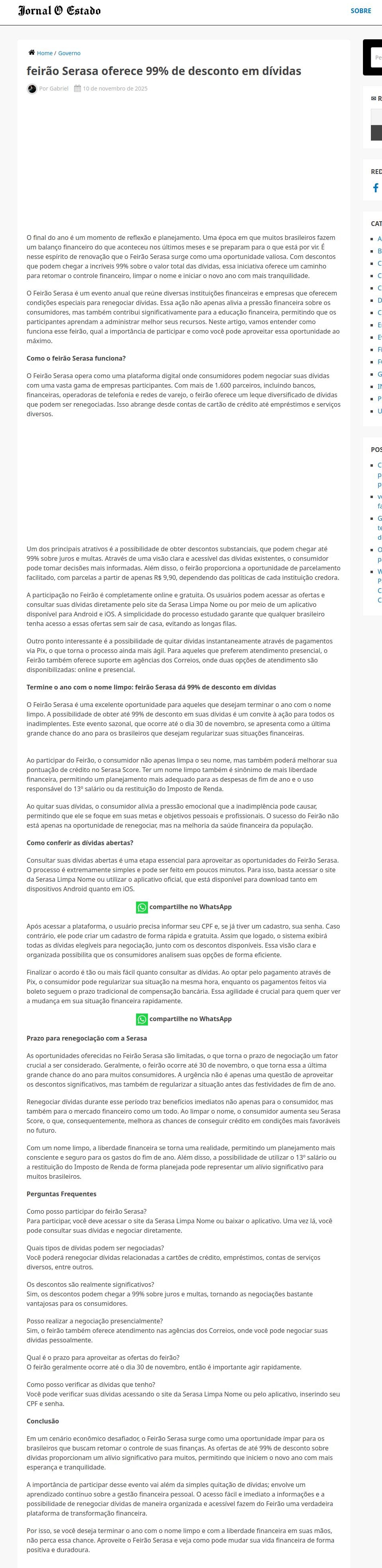 https://jornaloestado.com.br/feirao-serasa-oferece-99-de-desconto-em-dividas