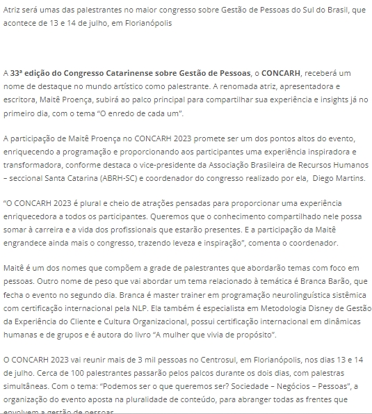 Maitê Proença está confirmada para o CONCARH 2023