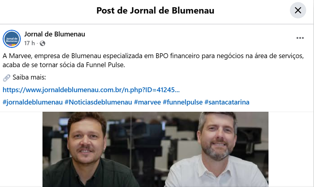 Marvee anuncia sociedade com Funnel Pulse, startup que impulsiona automação de vendas | Jornal de Blumenau
