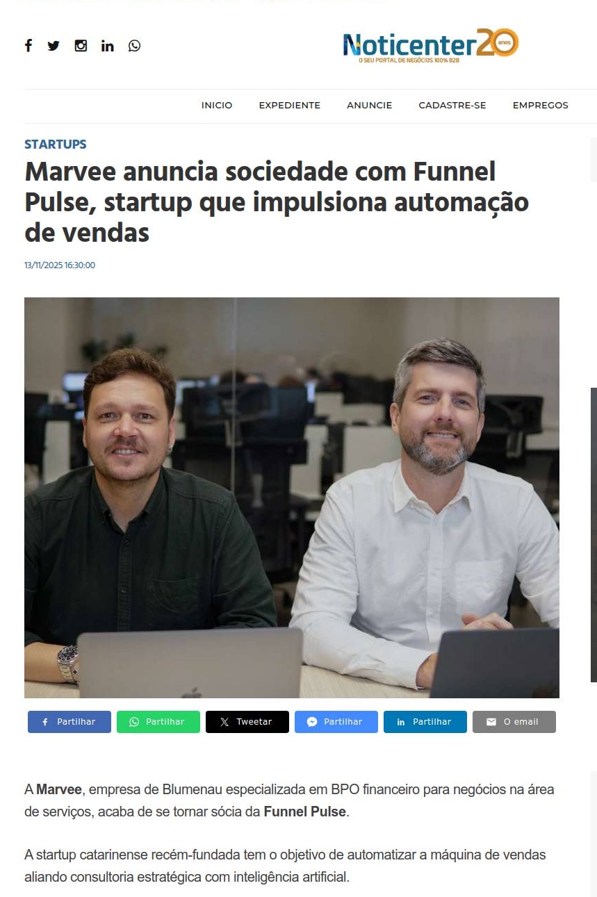 Marvee anuncia sociedade com Funnel Pulse, startup que impulsiona automação de vendas Noticenter