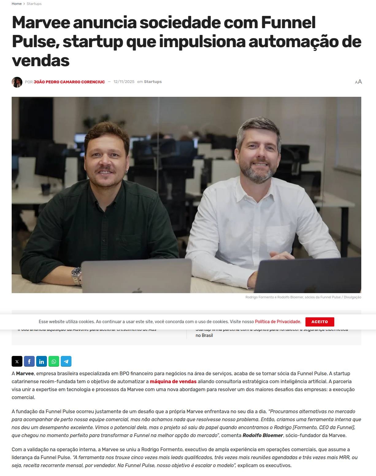 Marvee anuncia sociedade com Funnel Pulse, startup que impulsiona automação de vendas