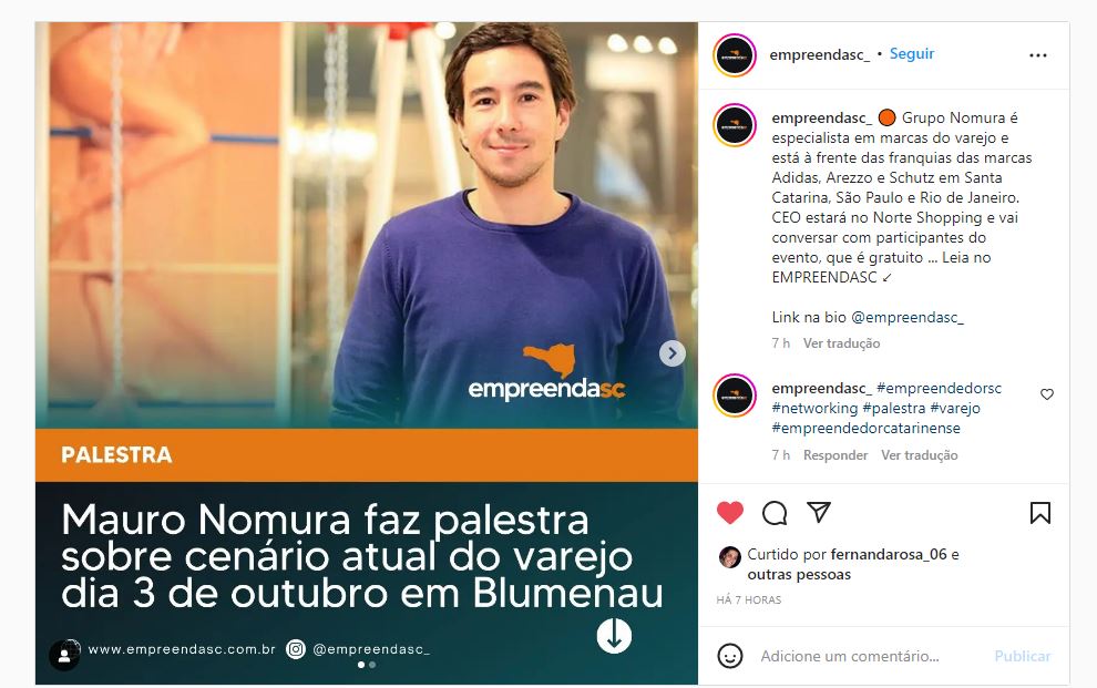 Mauro Nomura faz palestra sobre cenário atual do varejo dia 3 de outubro